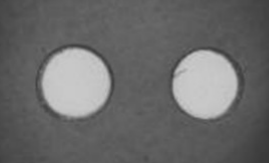 圖2用連續(xù)變倍遠(yuǎn)心鏡頭拍攝,因?yàn)檫h(yuǎn)心鏡頭特有的平行光特性,可以確保拍攝出的小孔輪廓清晰,數(shù)據(jù)準(zhǔn)確,不需要對(duì)圖像做過(guò)多校正。