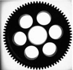 遠(yuǎn)心鏡頭的光路是平行光設(shè)計(jì),從圖4可以看出,用遠(yuǎn)心鏡頭拍攝齒輪,齒輪的圓孔內(nèi)邊緣和外齒輪邊緣輪廓清晰,孔徑數(shù)據(jù)真實(shí),不存在孔內(nèi)壁可見(jiàn)和外壁畸變的現(xiàn)象,無(wú)需對(duì)圖像校正。